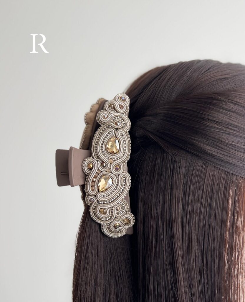 光の角度で表情を変えるビジューたちと、繊細なコードワークが織りなす唯一無二の存在感。
